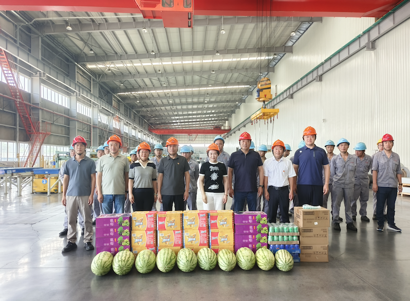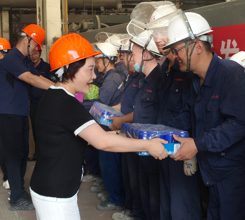 7月15日,集團總裁劉萍帶隊,深入各車間開展高溫慰問活動,向堅守一線的員工送清涼、表感謝、囑安全。集團領導梅平、唐洪年、陸薺芳、許潮、宋志強共同參加慰問。